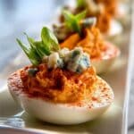 These Amazing Buffalo Blue Cheese Deviled Eggs combine classic deviled eggs with a spicy buffalo twist and tangy blue cheese for a bold and flavorful appetizer that’s perfect for game days or parties.