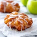Store leftover apple fritters in an airtight container in the refrigerator for up to 2 days. Reheat gently in a warm oven or oven toaster to maintain crispness. Avoid microwaving as it can make them soggy.