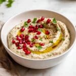 - Serve and garnish: Drizzle the dip with extra virgin olive oil before serving. Garnish with additional chopped parsley and optional pomegranate seeds for a pop of color and flavor.
