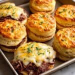 Keywords: French Dip, Biscuits, Roast Beef, Provolone, Baked Biscuits, Beef Dip, Appetizer, Party Food
