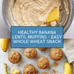 Keywords: banana lentil muffins, healthy muffins, whole wheat muffins, baked lentil recipe, vegetarian breakfast, healthy snack