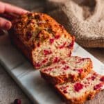 Store the cranberry orange bread in an airtight container at room temperature for up to 3 days. For longer storage, wrap it tightly and freeze for up to 2 months. Thaw at room temperature before serving. Reheat slices gently in the microwave or toaster oven if desired.
