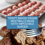 Keywords: vegan meatballs, plant-based meatballs, Impossible burger recipe, Beyond Meat meatballs, vegan appetizers, baked vegan meatballs