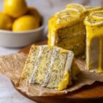 Keywords: lemon cake, poppy seed cake, lemon curd, cream cheese frosting, homemade cake, layered cake, bakery-style cake