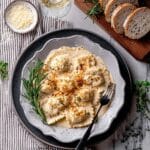 Elevate your dinner with delectable Butternut Squash Ravioli smothered in a rich and aromatic Rosemary Cream Sauce. This elegant yet comforting dish combines tender ravioli with a savory sauce made from white wine, fresh rosemary, and Parmesan, topped with golden toasted panko breadcrumbs for a delightful crunch.