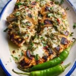 PrintCheesy Grilled Salsa Verde Pepper Jack Chicken Recipe
