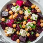 Keywords: chickpea salad, beet salad, feta cheese salad, roasted beet recipe, Mediterranean salad, healthy vegetable salad, easy lunch, vegetarian salad