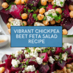 A vibrant and nutritious Chickpea, Beet, and Feta Salad combining roasted beets, protein-rich chickpeas, fresh greens, and crunchy sunflower seeds. Tossed in a tangy olive oil and balsamic vinegar dressing, this salad offers a perfect balance of earthiness, creaminess, and zest for a wholesome meal or side dish.