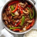 A delicious and savory Chinese Pepper Steak recipe featuring tender marinated beef sirloin stir-fried with crisp onions and colorful bell peppers, finished with a flavorful oyster sauce-based sauce. This quick and easy stir-fry is perfect for a satisfying weeknight dinner.