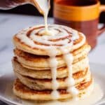Keywords: Cinnamon Roll Pancakes, cinnamon swirl pancakes, breakfast pancakes, cream cheese glaze, sweet breakfast, easy pancake recipe