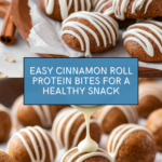Keywords: Protein bites, cinnamon roll snack, no bake protein balls, healthy snack, quick energy bites