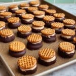 - Dip Pretzel Bites: Dip each cookie dough-stuffed pretzel halfway into the melted chocolate, ensuring an even coating on one side, then return them to the lined baking sheet.