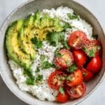 A fresh and creamy Cottage Cheese and Avocado Salad that combines the richness of cottage cheese with the buttery texture of ripe avocados and the juicy burst of cherry tomatoes, all brightened with lime juice and cilantro. This quick, no-cook salad is perfect as a healthy snack or a light meal.