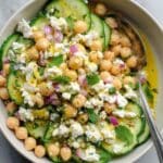 A refreshing and protein-packed Cottage Cheese and Chickpea Salad featuring crisp cucumbers, juicy cherry tomatoes, and bright lemon dressing, perfect as a light meal or side dish.