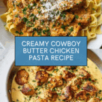 This Cowboy Butter Chicken Pasta is a rich and flavorful dish featuring tender, seasoned chicken pieces sautéed in a buttery garlic sauce enriched with Parmesan and cream. Tossed with fettuccine and fresh parsley, it’s a comforting, hearty meal perfect for a satisfying dinner.