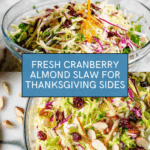 This Cranberry Almond Thanksgiving Slaw is a bright, crunchy side dish perfect for holiday meals. The tangy apple cider vinaigrette pairs beautifully with sweet dried cranberries and toasted almonds, adding a fresh, festive touch to your table.