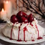 This elegant Cranberry Mulled Pear Pavlova combines a crisp and airy meringue base with poached spiced pears infused in a warm cranberry and red wine mulled syrup, topped with luscious whipped mascarpone cream. The dessert balances tart, sweet, and aromatic flavors, making it a perfect festive centerpiece.
