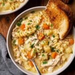 A comforting and hearty Chicken Noodle Soup made with tender shredded chicken, fresh vegetables, and pasta simmered in a creamy, flavorful broth, perfect for a cozy meal.
