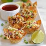 6. Serve: Serve the crispy chicken wonton tacos immediately while the shells are still crunchy. Enjoy this flavorful, bite-sized treat!