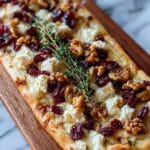PrintCrispy Flatbread with Brie, Cranberries, Toasted Walnuts, and Hot Honey Drizzle Recipe