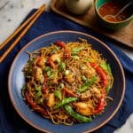 This Crockpot Chicken Lo Mein is an easy, flavorful meal perfect for busy weeknights. Tender chicken thighs simmer in a savory sauce, mixed with fresh vegetables and tender noodles for a comforting dish the whole family will enjoy.
