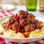 - Garnish & serve: Before serving, garnish the meatballs with fresh parsley and, if desired, extra cranberries for a festive presentation.