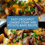 Keywords: Crockpot steak recipe, loaded potato bake, slow cooker beef, easy dinner, comfort food