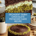 Keywords: Chocolate Pistachio Cake, Dubai dessert, Middle Eastern cake, kataifi pastry dessert, dark chocolate cake, pistachio butter cake, whipped ganache