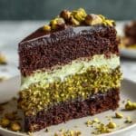 Keywords: Chocolate Pistachio Cake, Dubai dessert, Middle Eastern cake, kataifi pastry dessert, dark chocolate cake, pistachio butter cake, whipped ganache