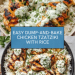 This Dump-and-Bake Chicken Tzatziki with Rice is a simple, flavorful one-pan meal perfect for busy weeknights. Tender chicken and aromatic rice bake together under a creamy tzatziki topping, making for a delicious Mediterranean-inspired dish that requires minimal effort.
