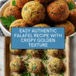 This Easy Authentic Falafel Recipe offers a deliciously crispy and flavorful Middle Eastern classic made from soaked chickpeas, fresh herbs, and aromatic spices. Fried to golden perfection, these falafels are perfect as a snack, appetizer, or main dish, and can also be baked or air-fried for a healthier alternative. Served best with a tangy lemon tahini dipping sauce, this recipe guarantees authentic texture and taste with simple ingredients.
