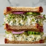 These Easy Cucumber Salad Sandwiches are a fresh, light, and delicious option perfect for a quick lunch or snack. Featuring a creamy Greek yogurt and feta-based cucumber salad with fresh herbs, lemon, and crunchy alfalfa sprouts on whole-grain bread, they offer a refreshing and healthy twist on a classic cucumber sandwich.