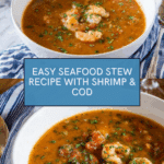 Keywords: seafood stew, cod, shrimp, clams, easy seafood recipe, tomato stew, stovetop seafood