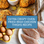 Enjoy the perfect balance of crunch and flavor with these extra crispy Irish oven-fried chicken thighs. This recipe combines a buttermilk marinade and a seasoned panko coating for irresistibly tender and crispy chicken, baked to golden perfection.