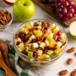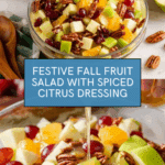 A vibrant and festive Fall Fruit Salad perfect for Thanksgiving and Christmas, featuring a blend of fresh apples, oranges, grapes, dried cranberries, and toasted pecans, all tossed in a zesty citrus dressing infused with apple pie spice.