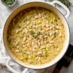 A hearty and flavorful dish combining creamy cannellini beans with aromatic leeks, garlic, herbs, and melted cheeses, finished with a refreshing hint of lemon and fresh parsley. Perfect for a comforting vegetarian meal served alongside crispy bread.