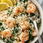- Finish and serve: Return the cooked shrimp to the skillet with the tender rice. Drizzle with freshly squeezed lemon juice and gently toss everything together to reheat the shrimp and evenly distribute flavors. Sprinkle the chopped fresh parsley over the top, adjust seasoning with additional salt and pepper if necessary, and serve immediately while hot.