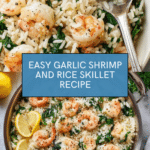 This garlic shrimp and rice skillet recipe offers a flavorful, one-pan meal featuring tender shrimp sautéed with garlic and smoked paprika, combined with perfectly toasted long-grain rice simmered in a savory broth and finished with fresh lemon juice and parsley for a bright, satisfying dish.