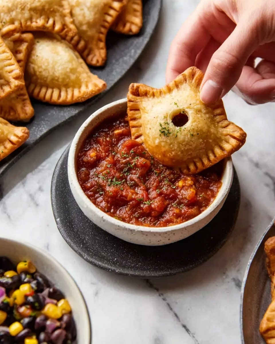 7. Step 7: Bake the pies for 10-14 minutes until golden brown. Let cool for a few minutes before serving with salsa or guacamole for dipping. Enjoy!