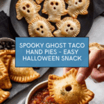 Keywords: Ghost taco hand pies, Halloween recipe, taco hand pies, savory hand pies, Mexican hand pies, kid-friendly tacos, festive appetizers