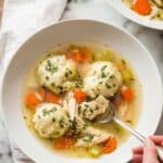• You can add frozen peas or green beans to the soup along with the dumplings for more veggies.