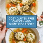 This Gluten Free Chicken and Dumplings recipe is a comforting, hearty dish featuring tender chicken simmered with fresh vegetables in a flavorful broth, topped with fluffy gluten free dumplings made from a special flour blend. Perfect for those with gluten sensitivities or anyone looking for a delicious, cozy meal.