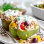 - Serve: Remove from oven and squeeze fresh lemon juice over the stuffed peppers before serving. These pair wonderfully with tzatziki sauce, either homemade or store-bought, for an added refreshing touch.