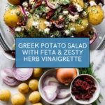 Greek Potato Salad with Feta, Olives, and a Zesty Herb Vinaigrette is a vibrant and tasty side dish perfect for any meal. Combining tender baby potatoes with tangy feta and fresh herbs, this salad offers a delightful burst of Mediterranean flavors.