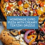 Keywords: gyro pizza, tzatziki sauce, Greek pizza, Mediterranean pizza, homemade pizza dough, gyro meat recipe