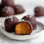 These Healthy Pumpkin Truffles are bite-sized treats bursting with seasonal flavor. Made with real pumpkin purée, homemade pumpkin spice, and oat flour, they are naturally sweetened with liquid stevia and coated in rich dark chocolate. Perfect as a guilt-free indulgence or a festive dessert, these truffles combine creamy pumpkin filling with a satisfying chocolate shell and a hint of flaky sea salt for a delightful contrast.