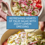 A refreshing and vibrant Hearts of Palm Salad featuring crisp vegetables and a tangy lemon-Dijon dressing. Perfect as a light side or a healthy snack, this no-cook salad combines creamy mayonnaise with zesty lemon juice and mustard to enhance the delicate flavor of hearts of palm.