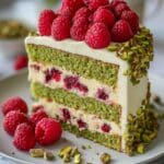 The Heavenly Pistachio Raspberry Cake is a luscious layered dessert combining the nutty flavor of ground pistachios with a creamy mascarpone filling and a vibrant raspberry compote. This elegant cake features a moist pistachio-infused sponge, rich mascarpone cream blended with whipped cream, and a tangy-sweet raspberry filling, garnished with chopped roasted pistachios and piped cream dots for a stunning presentation. Perfect for special occasions or indulgent tea-time treats.
