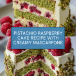 Keywords: Pistachio cake, raspberry filling, mascarpone cream, nutty dessert, layered cake, pistachio raspberry cake