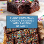 Keywords: Cosmic Brownies, homemade brownies, chocolate ganache, rainbow chocolate chips, fudgy brownies, easy dessert